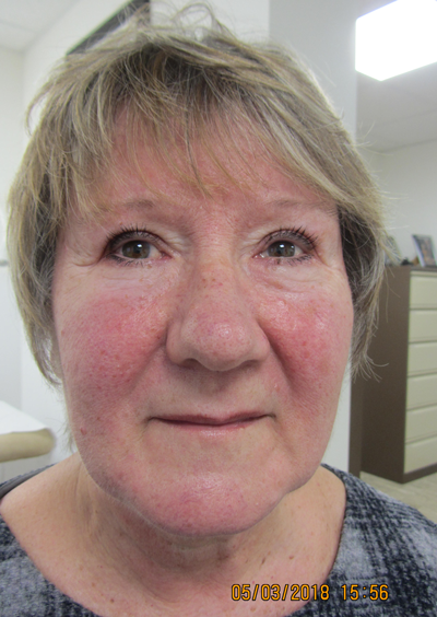 The process can be repeated depending upon the required depth of treatment but the subsequent intradermal injury obviously cannot be wiped away. In moderate rhinophyma ablation to deepest dermis is not actually required and may create risk of poor scar and de-pigmentation. The aftercare advice was simply to keep the area clean from debris using a propriety brand antiseptic soap such as Carex (Cussons, UK). No patient complained of pain in the recovery period and no regular analgesics were required.