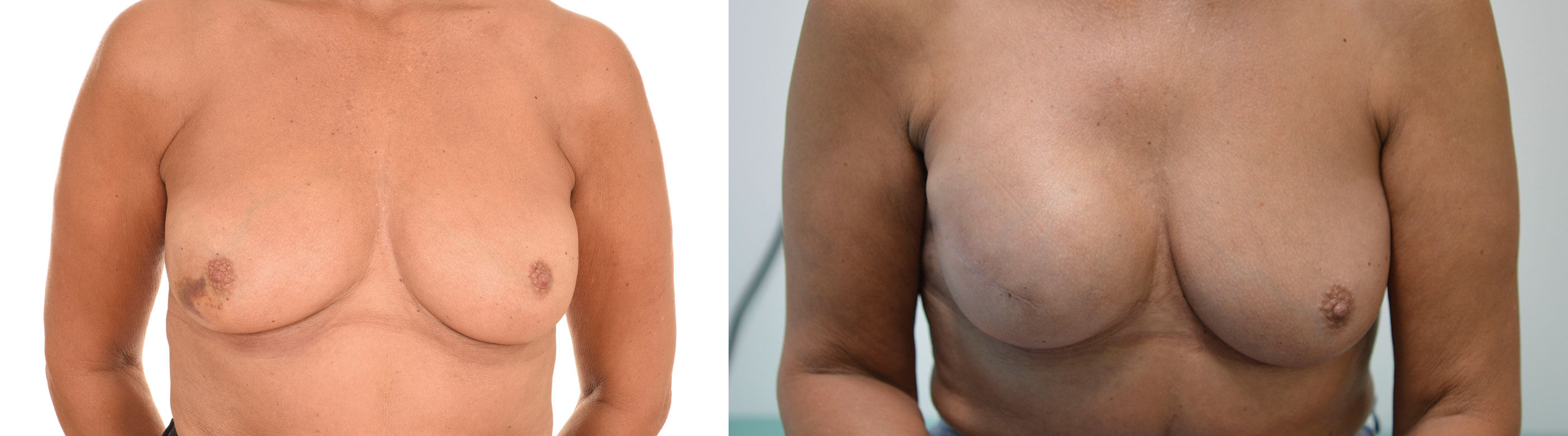 Figures 2a and 2b: Mastectomy and immediate reconstruction with implant and acellular dermal matrix.