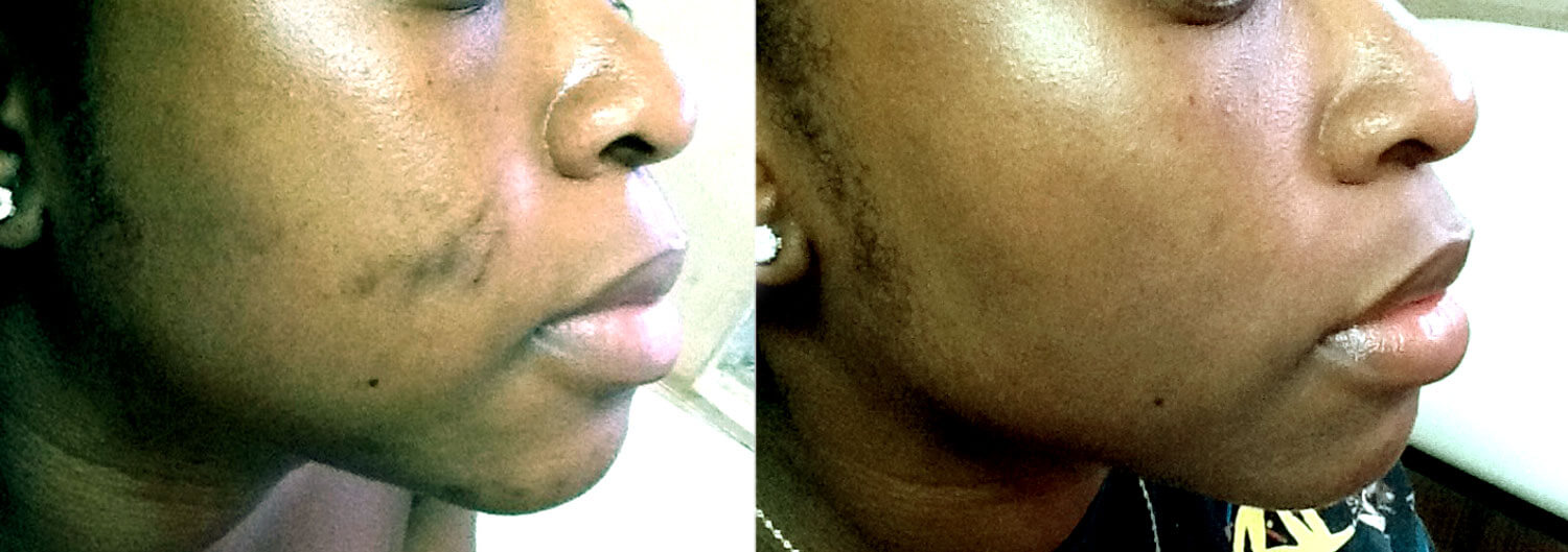 A 22-year-old female with Fitzpatrick skin type VI, presented with acne and acne-induced PIH and scarring.