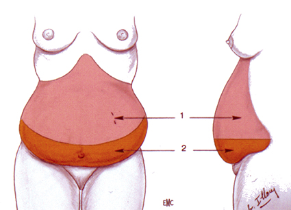 With the evolution of superficial suction lipectomy in the 1990’s the need for skin resection became less common and the limits of skin retraction changed. A clear clinical cut-off does occur where superficial liposuction is not adequate and skin resection is mandatory [1] (Figure 1).