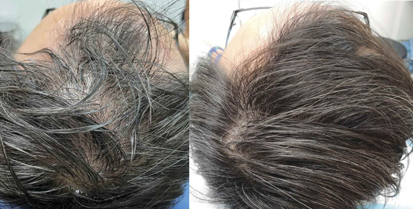 A study in 10 patients with androgenetic alopecia treated weekly with application of red deer UCL-MSC exosomal proteins following microneedling of the scalp demonstrated significant amplification of the follicular units per cm [2] (P <.05), with decreased inter-follicular distance (P <.05) as documented in phototrichograms after 12 weeks. Density and total hair count per cm [2] increased (P <.05), as did the sum of hair width per cm [2] (P <.05) [14].