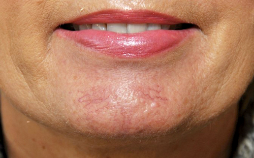 Figure 1: Telangiectasia (thread veins) on the chin as distinct veins in a group.