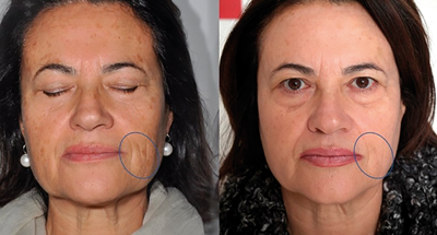 improvement of her wrinkles and hyperchromias, as the blue circle highlights.