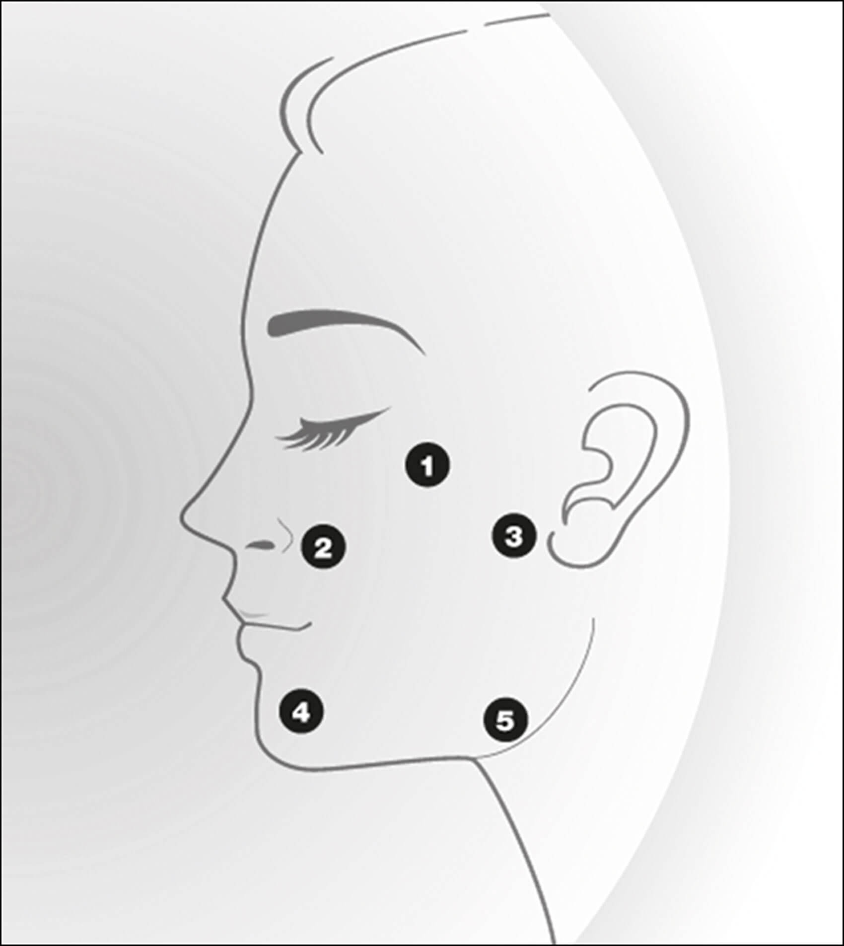 The skin is cleaned with an antiseptic solution (NatraSan) and under aseptic conditions using the 29G needle provided, 0.2ml of Profhilo® is injected as a bolus deep dermally or subdermal (hypodermis). To ensure that the needle is either in the deep dermis or hypodermis, the skin is punctured at an angle of 10-30 degrees. When the product is injected into the deep dermis a blanching effect may be observed and the patient may experience some mild pain. When injected into the hypodermis it is possible to ‘windscreen wipe’ the needle on the under surface of the dermis and a small subdermal swelling is observed.