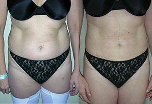 The benefits are obvious by just comparing the fat removed by conventional tumescent liposuction and body-jet (Figure 1). This translates into clinical practice: patients suffer less swelling, bruising and have a faster recovery (Figure 2). Many cases can easily be treated under local anaesthesia. From an accuracy point of view the body-jet has a very important feature: unlike tumescent techniques, the fluid can be easily squeezed out from the tissues to reveal any contour irregularities or persisting fat deposits.