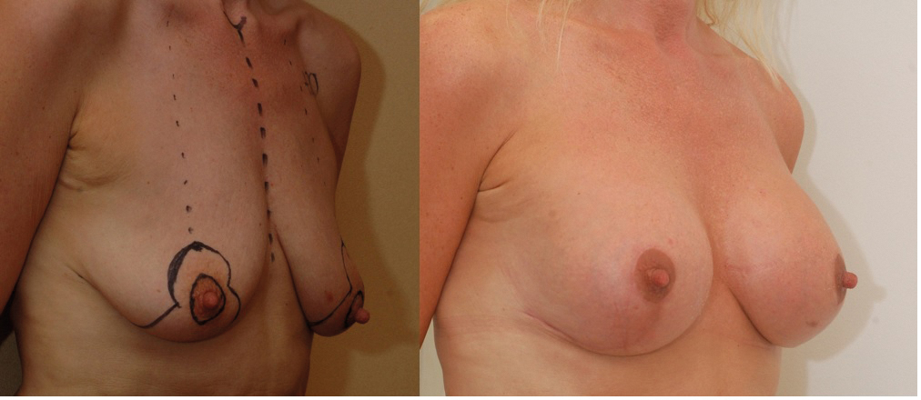 Figures 4 and 5 show augmentation mastopexies, before and after.