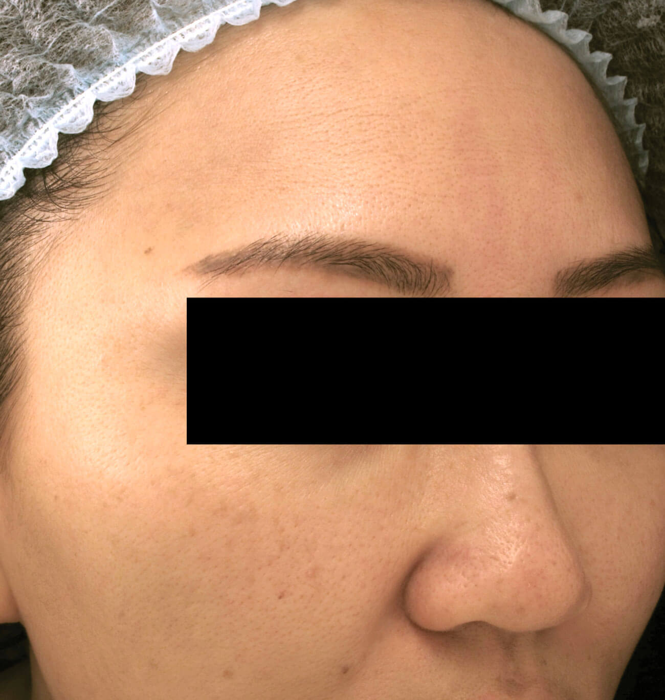 After cleaning the face and pe-treatment photography, topical anaesthetic (Benzocaine 20%/Lidocaine 6%/Tetracaine 4%) is applied onto the face for 40 minutes. The topical anaesthetic cream is removed completely before the laser treatment.