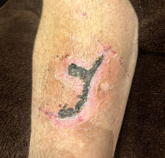 The patient is now fully ambulant and is fully healed after natural eschar separation a few days later.