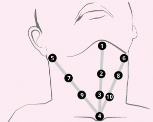 The patients were treated with two interventions in the first session, as follows: 2ml of hyaluronic acid stable hybrid cooperative complexes of high and low molecular weight for restoring skin laxity was injected into the recently developed Neck Bio-Aesthetic Points (10-point injections of 0.2ml) (Figure 1).