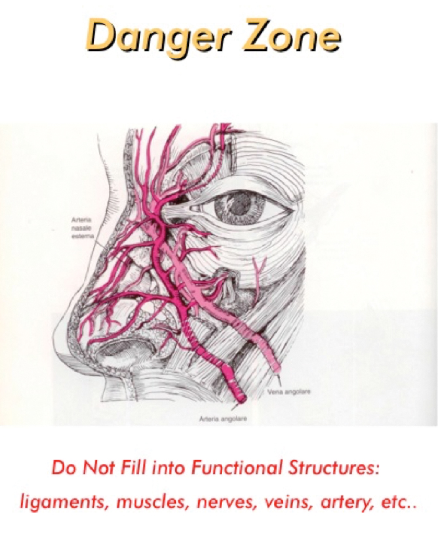 The subdermal / subcutaneous plane can be manipulated quite freely and painlessly. Dermal fillers should be injected using a retrograde linear threading technique involving fanning. The cannula or needle tip should remain in the skin whilst fanning. (Although the recognised layer to inject fillers in nose modulation is the supraperiosteal layer, this is present in the upper third of the nose only, while the lower part has just smooth cartilage and heavy skin.) Each thread injected should consist of 0.05-0.1ml and the total volume on each side will usually be between 0.5-1ml. Following treatment, the skin is gently cleaned and gently massaged. Appropriate aftercare instructions must be provided, together with arrangements for a follow-up appointment.
