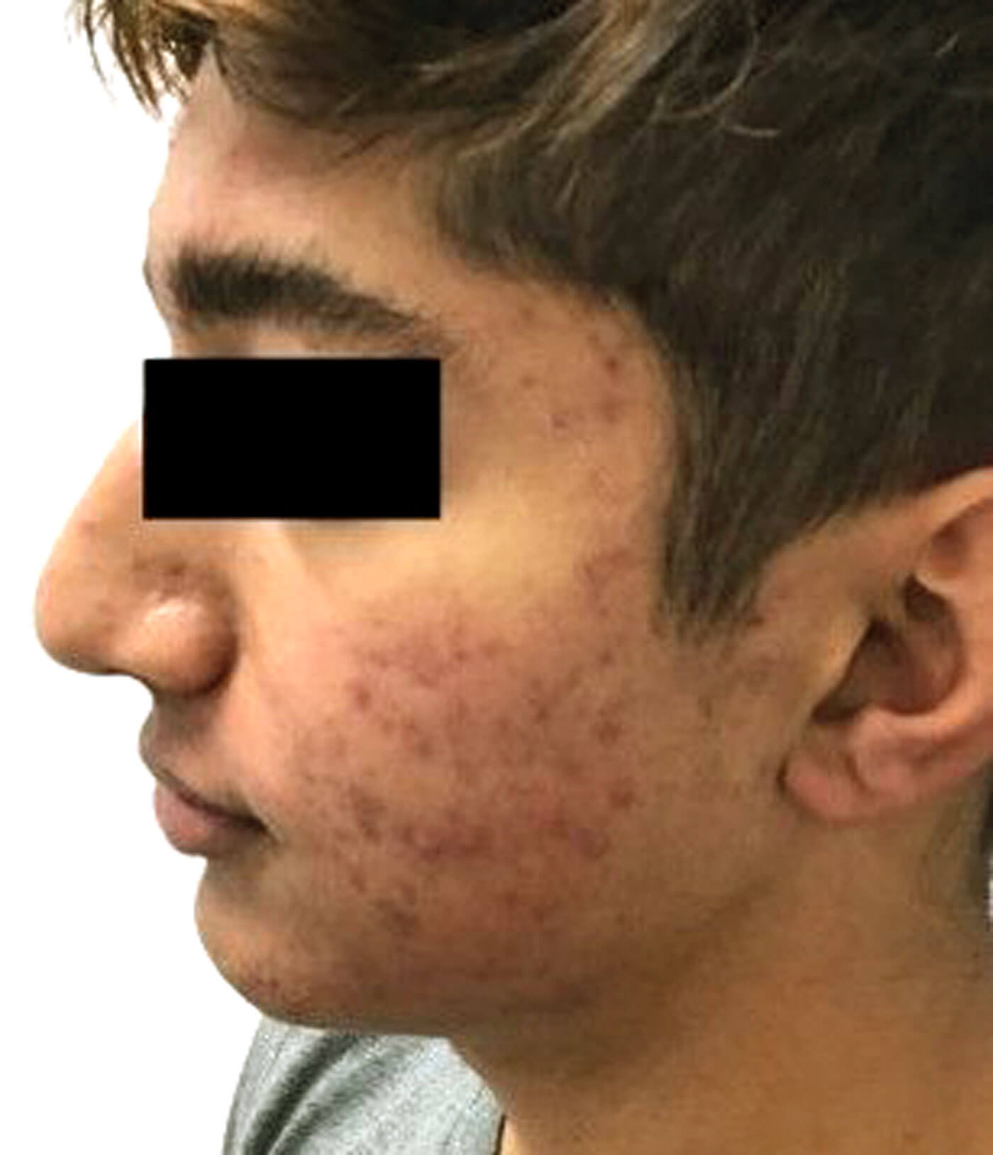 Once the treatment is completed, I inject any stubborn acne cysts with 2.5mg/kg of intralesional Kenalog. In this case, resolution of acne was noted after three monthly treatments. Due to mildly persistent erythema, a fourth treatment was performed. The results shown are after the fourth laser treatment. Of note, this patient has been under my care for several years. He was treated with topicals and orals for months but continued to struggle with troublesome acne. He is one of the first cohorts of patients that were treated with the Aerolase Neo Elite. His skin continues to be clear two years after his treatment. He is maintained on topical benzoyl peroxide in the morning and adapalene 0.3%/BPO 2.5% (Epiduo forte) in the evening. He continues to come into the office every nine months for a maintenance laser treatment.