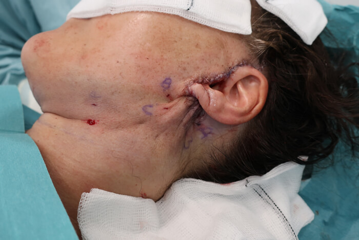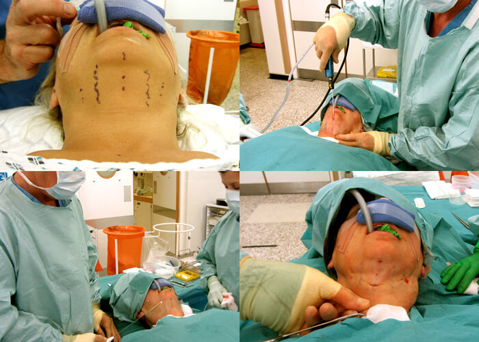 Figure 2: Same patient during the procedure showing skin markings, lipocutaneous dissection and