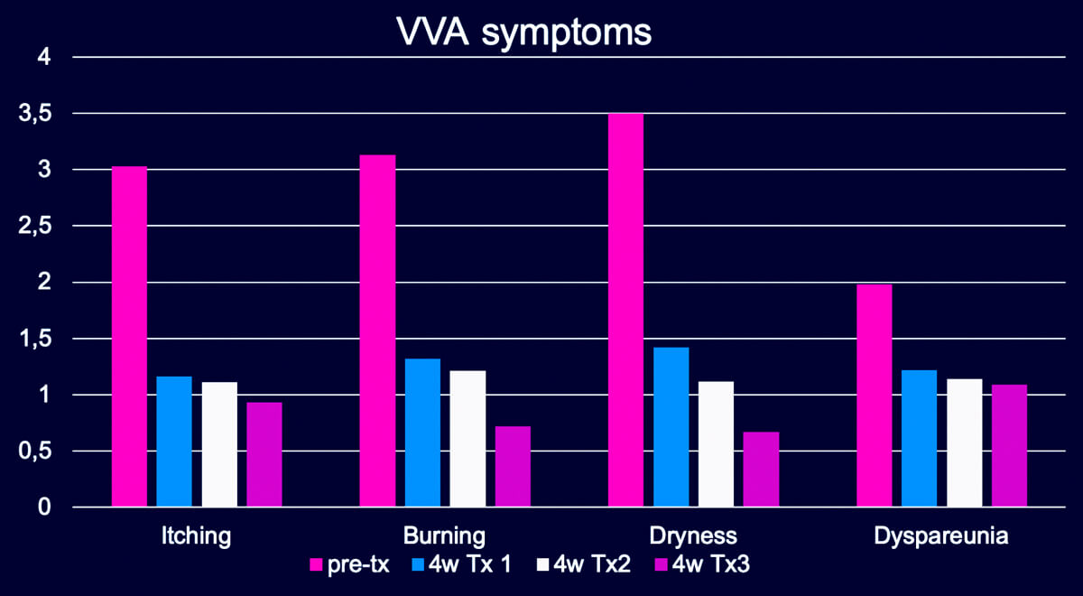 Eligible patients for a vaginal treatment are recruited using a standardised questionnaire for vulvovaginal atrophy (VVA). They usually report itching, burning and pain during intercourse, along with a loss of vaginal sensation. Special questionnaires are used for women after childbirth who report similar symptoms, including a widening of the vaginal canal.