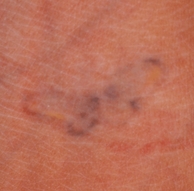 - Traumatic: pigment acquired through traumatic injury such as skin abrasions where dirt or debris becomes embedded in the skin as a natural ‘tattoo’.