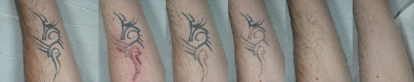 In our experience, we have noticed that patients who have significantly longer intervals between sessions get better results than patients undergoing more frequent treatment. In order to achieve a balance between patient satisfaction and optimal clinical outcome, the current recommendation is to treat at intervals of at least seven to eight weeks between sessions, unless a longer recovery period is required for the tissues. Our experience has shown that adverse events following laser tattoo removal are often caused by patient failure to comply with post-treatment instructions. Unwanted pigmentary alterations [18] may include hyper- and hypopigmentation. Permanent changes to skin texture, scarring, hypertrophic scars and keloids are rare and are in any case reported in the literature. Compared with previous tattoo removal methods, Q-switched lasers have enabled great improvements to be made and are now regarded as the gold-standard treatment.