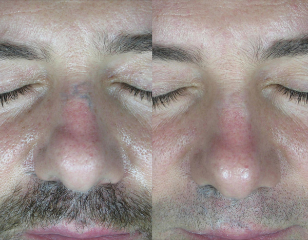 The QS Alexandrite laser effectively uses a 755nm wavelength that acts on blue, black and green pigments. The laser beam is also absorbed by melanin and can also lead to postoperative depigmentation. The QS Nd:YAG laser, on the other hand, uses a combined emission at wavelengths of 1064 and 532nm. The 1064nm beam selectively removes the dark pigment in the dermis with minimal involvement of melanin. In addition, the 532nm beam acts on red and brown pigments [16].