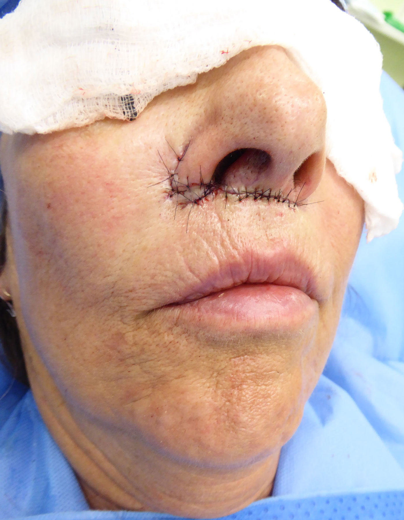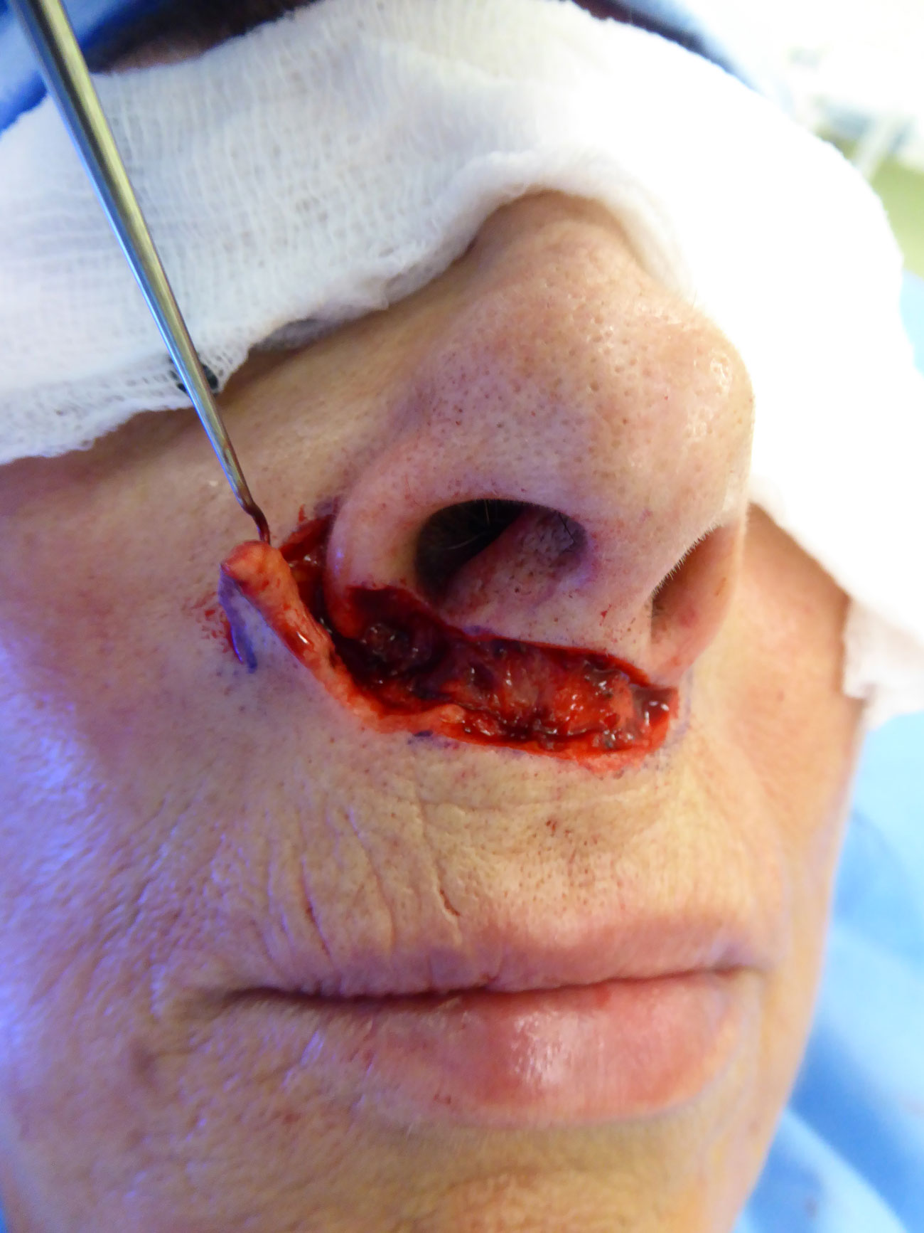 Figure 1: Right upper lip and nasal alar defect following BCC resection.