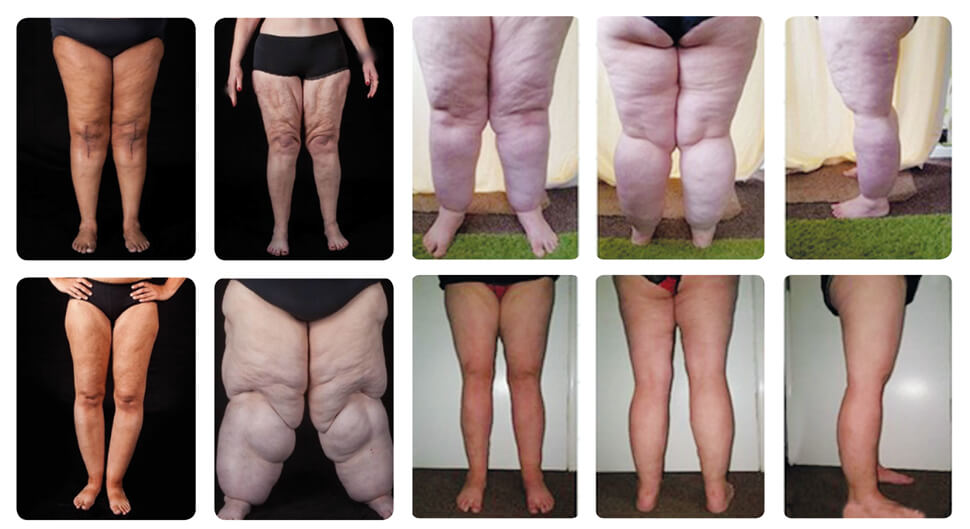 These images highlight some of the stages and types of lipoedema. The condition may present at puberty, during pregnancy or around the menopause. All stages have a negative impact on the quality of life for an individual. Early recognition and treatment are vital to prevent progression and deterioration. Images used with permission from FDRS https://www.fatdisorders.org/