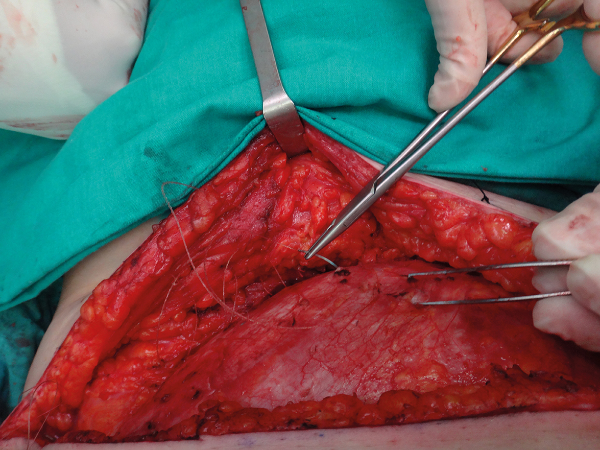 Figure 2: The donor site is closed using a quilting suture to avoid dead space. We use a continuous