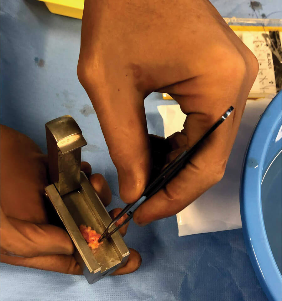 Figure 2: Fascia graft inserted into cartilage morselizer and expanded.