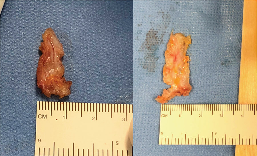 Figure 3: Fascia graft pre and post expansion going from 10mm to 15mm in width.