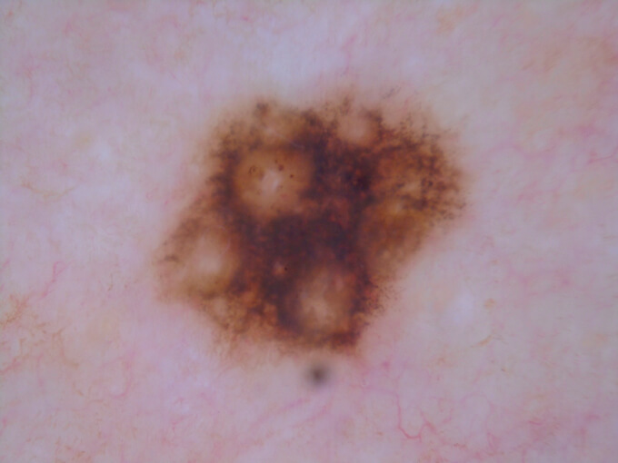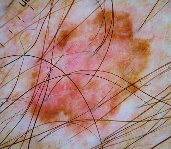Subtle pink and brown melanoma picked up on a routine skin check.