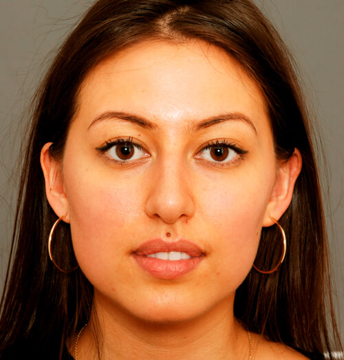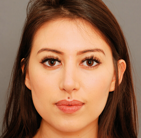 - Naturally shaped dorsum with over-projection (tension nose), midline septum.