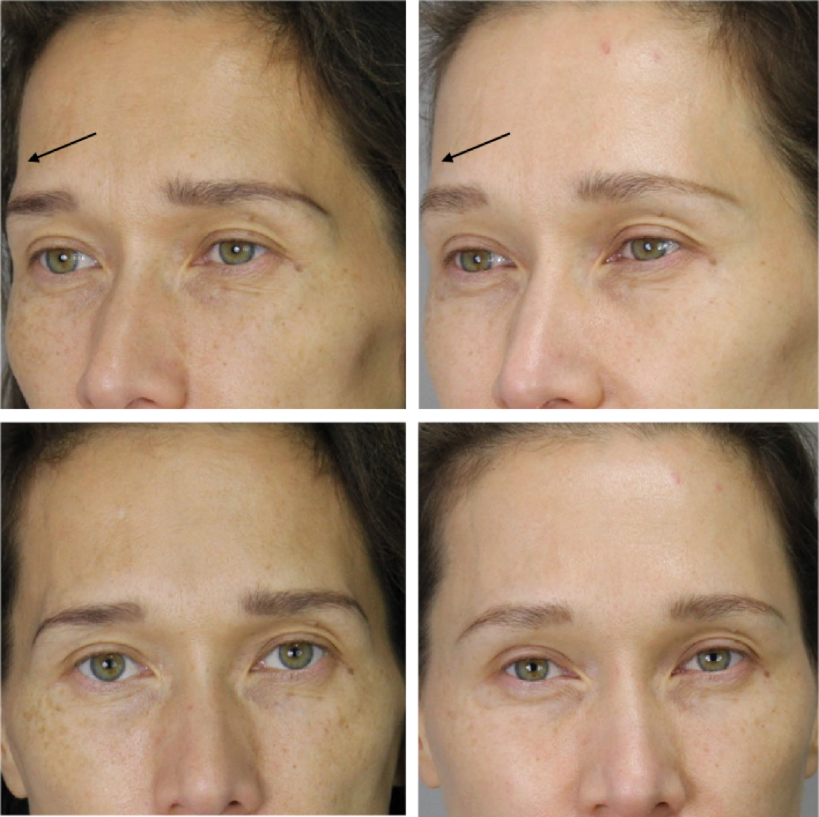 During the ageing process, many different anatomical changes contribute to the aged appearance of the face [1]. Focusing on the forehead, typical age-related changes are regression of the hairline, solar damage, skin laxity, dynamic wrinkles, reduction of fat and bone resorption. As with other facial areas, the ideal approach for treating the forehead is a multi-level, multi-modality treatment that targets all of these age-related anatomical changes.