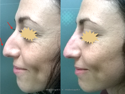 The alterations may also concern the shape, such as in cases of a ‘saddle’ nose, a nose with a hump, a nose that sticks up, an aquiline, deviated or broad nose, or a bulbous, flat or collapsed nose, etc. Therefore, the main indications for the application of the rhinofiller method are: