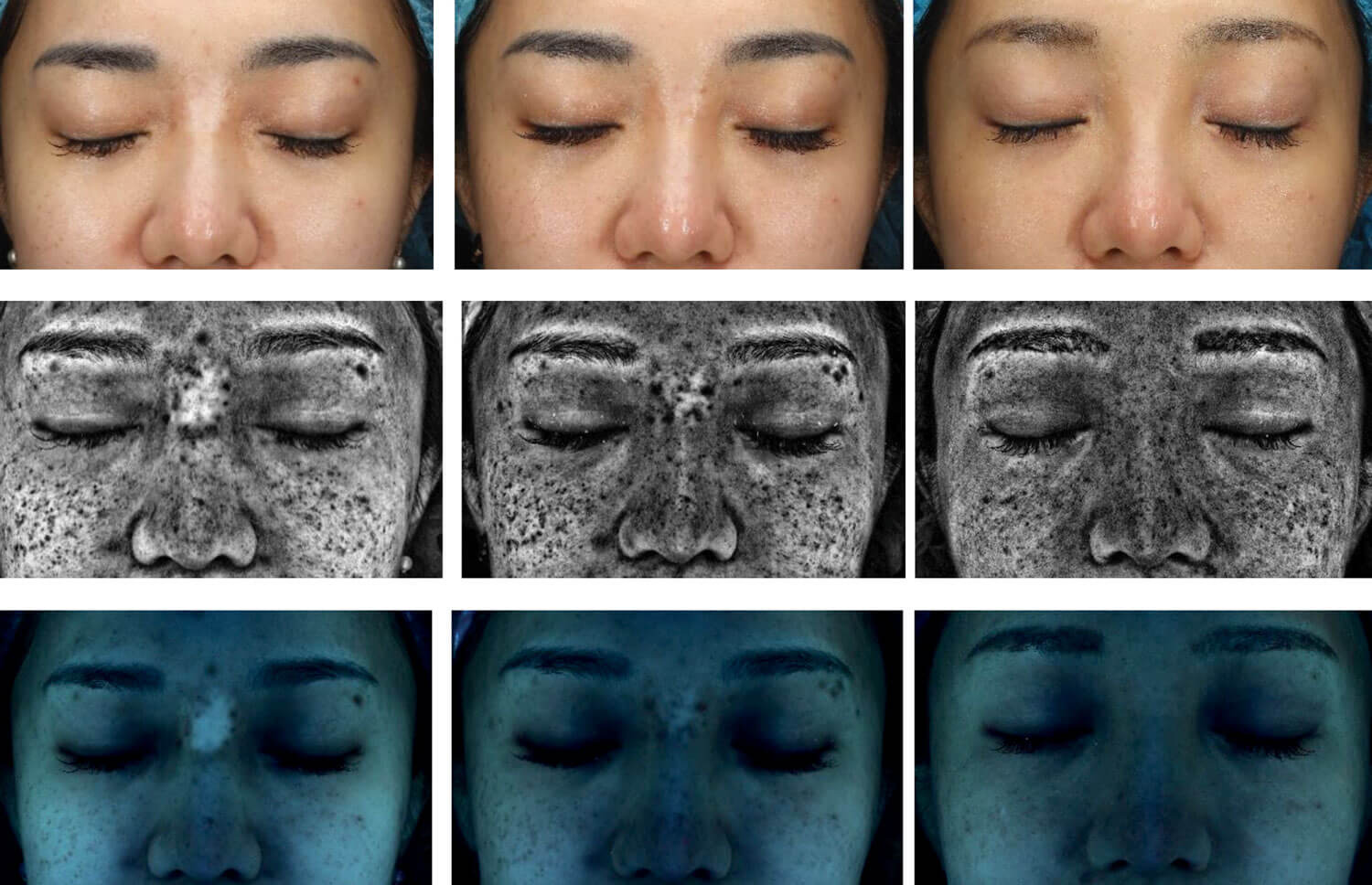 A 38-year-old female attended the clinic with hypopigmentation at nasion for the last five years. According to the patient, she had a silicone-based material injected into her nose a decade ago. Due to the nose looking unnatural following this procedure, she went to a doctor and received an intralesional triamcinolone injection as a method to deal with the silicone material after failing with hyaluronidase injection. The steroid injection did help with reducing the swelling, however, hypopigmentation with a ring of hyperpigmentation formed not long after. Since then, the patient tried multiple sessions of platelet rich plasma injection but to no avail. She requested lightening the ring of hyperpigmentation and possibly restoring some pigment to the hypopigmented skin.