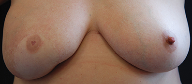 This study confirms that areola micropigmentation is a safe and valuable part of the patient care pathway, restoring their body image, self-confidence and well-being. Interestingly, the authors received requests for alternative designs within the nipple / areola border, i.e. heart shape nipple (Figure 3). So far patients have been happy with their choice, but to be cautious these are all done with the correct pigment colour, so that should the patient change their mind at a later date the nipple areola can be completed as normal.