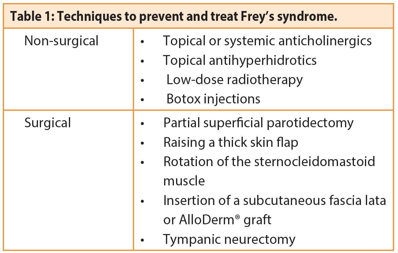 Techniques used to prevent and treat Frey’s syndrome are summarised in Table 1.