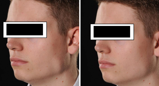 Figure 1: Left masseteric hypertrophy a) before and b) after BTX-A injections.