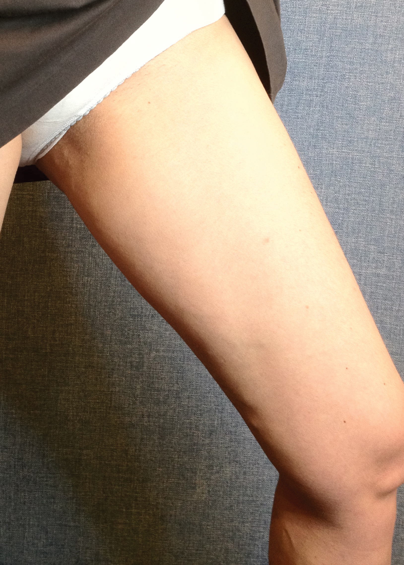 Figure 1: Picture of varicose veins of left leg showing para-vulvar varicose veins at the upper inner thigh - signifying pelvic vein reflux. This patient needs leg and transvaginal duplex ultrasound scanning to plan treatment.