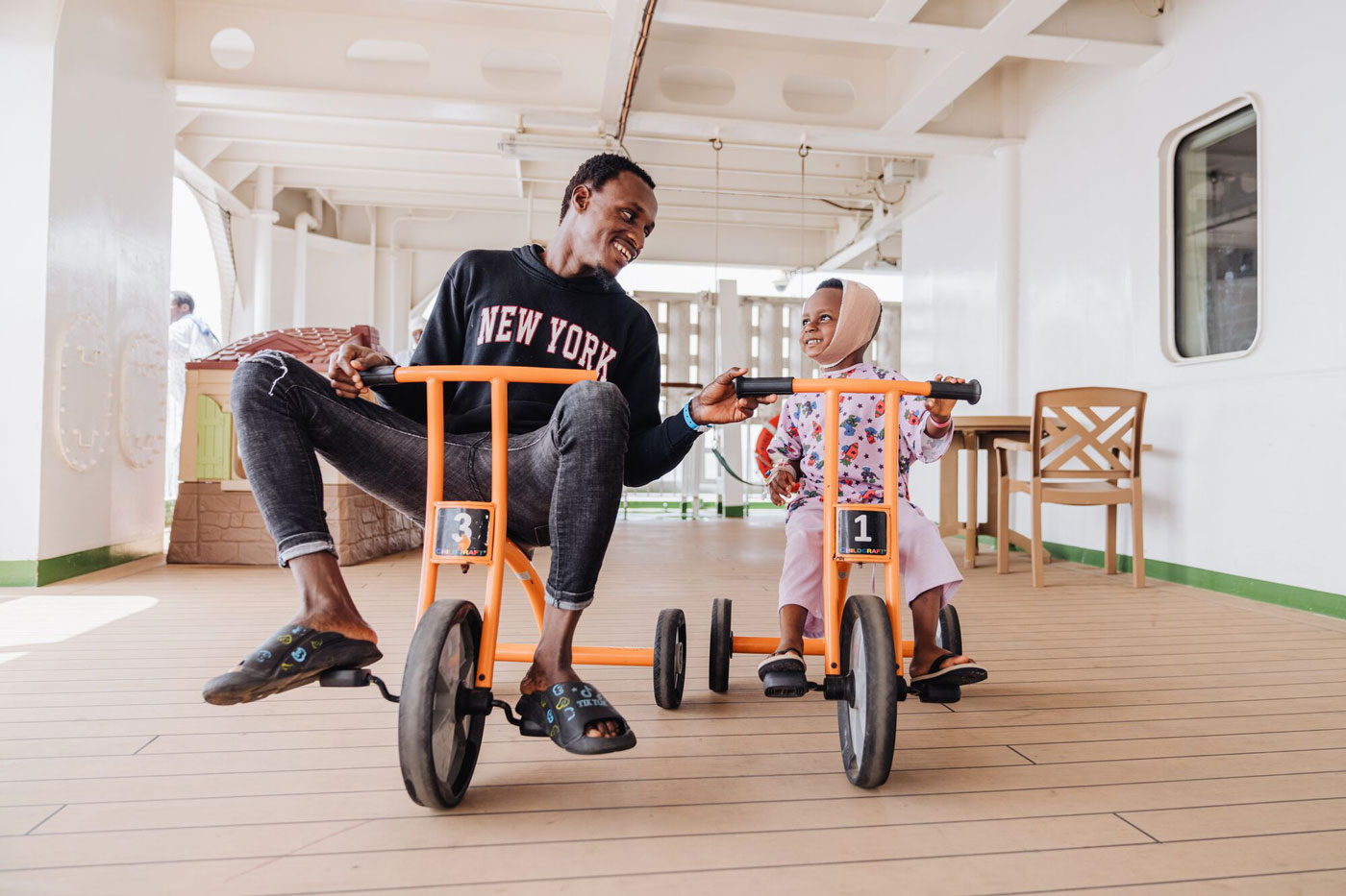 Since his family lived in northern Sierra Leone, they relocated to Freetown and the coast in July 2023, living with friends and relatives temporarily so they could be closer to the Global Mercy for their son’s appointments.