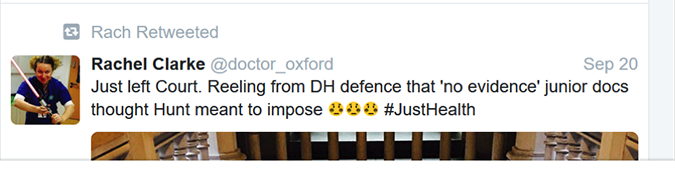 There is no doubt that Jeremy Hunt is a puppet but the problem is few know the identity of the puppet master(s). And when you talk about collusion it would appear that the British Medical Association and shadowy senior medical figures are playing their part in keeping the juniors in the dark and under control. This is not good. It is not good for patients, for the profession, or for the future of the NHS. But what can be done about the sad and sorry state of affairs? Youtube videos can clearly and unambiguously show that Clive Sheldon QC was misleading the court in his statements (https://youtu.be/9yULgAmJh-8). This is unacceptable from a person supposedly representing the Government. And Justice Green has shown himself to be out of touch with reality to believe the shady Queens Council. Let us be quite clear: just because a Judge says it is so does not necessarily mean that it is so! That is one of the reasons for Appeal courts. When Judges get out of hand it is up to the Lord Chancellor to bring them back into step.