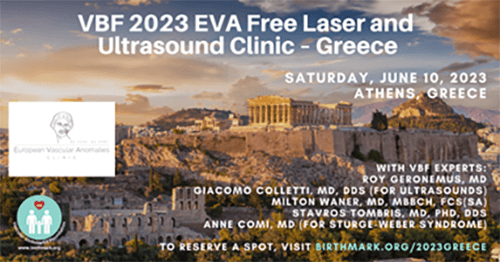 The Vascular Birthmarks Foundation (VBF) is proud to announce the 2023 VBF Free Laser and Ultrasound Clinic - Greece, on Saturday 10 June, in collaboration with host Stavros Tombris, MD, PhD, DDS, Director of the EVA Clinic, and Candela Medical, a leading global manufacturer of energy-based devices.
